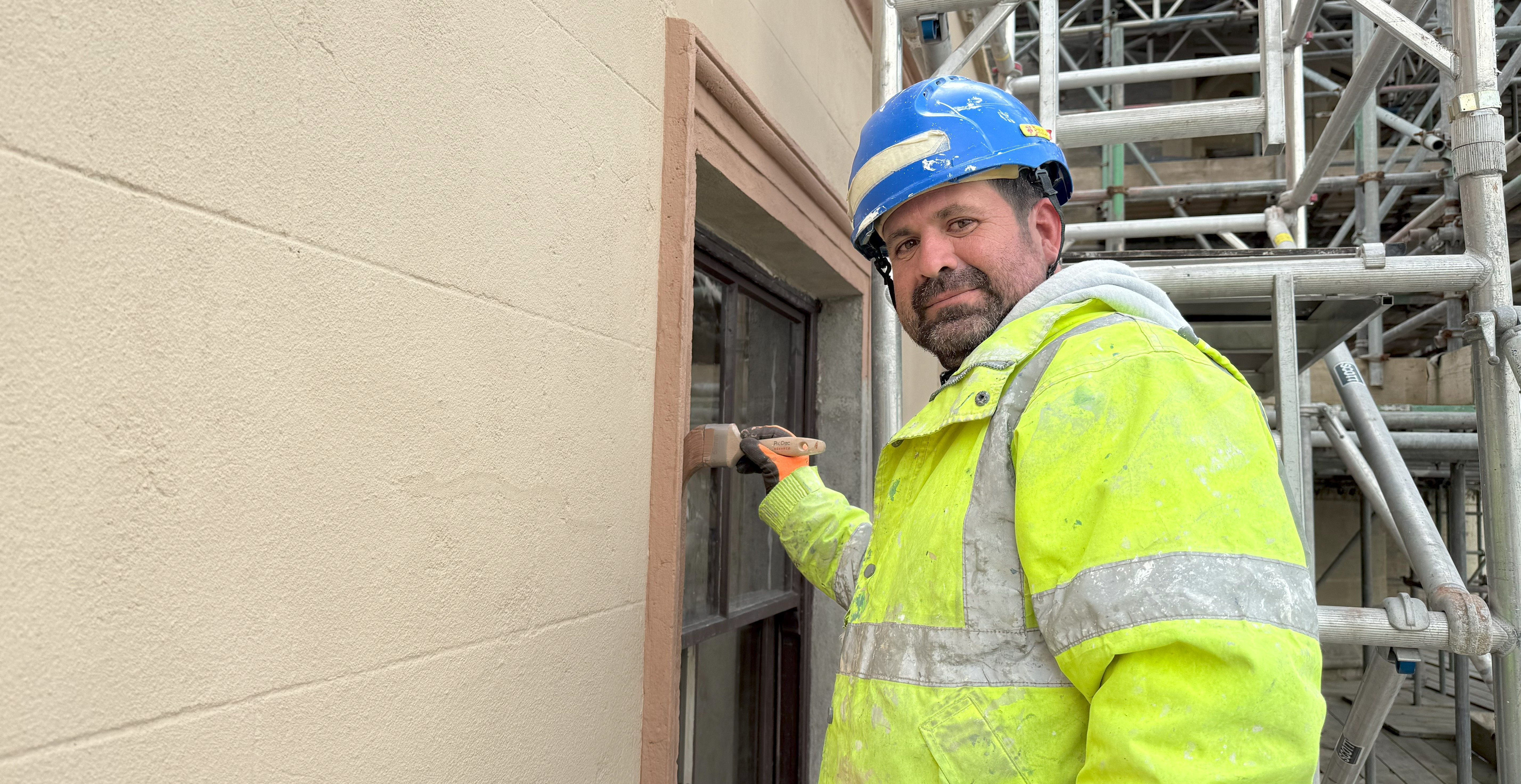 Unwaith y bydd y gwaith peintio wedi'i gwblhau, bydd y sylw ar du allan y ddwy fila yn symud at adfer y balconi ar Fila 1 ac yna tynnu'r sgaffaldiau i lawr.