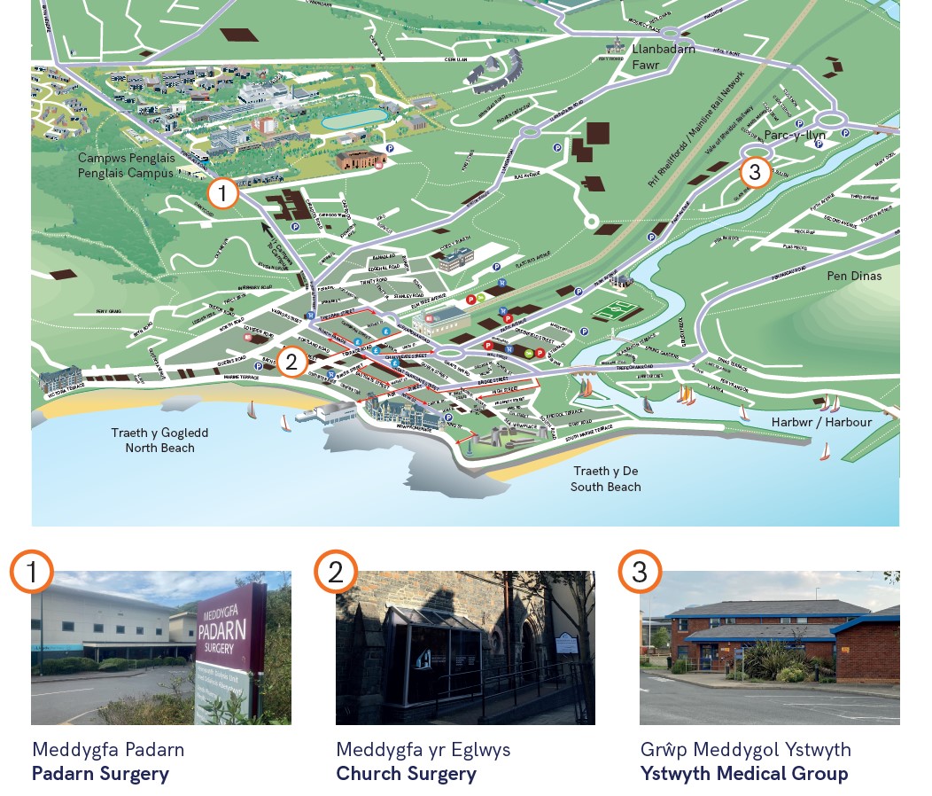Os nad ydych wedi gwneud hynny eisoes, cofrestrwch gyda Meddyg Teulu yn Aberystwyth drwy ddewis un o'r dolenni isod: