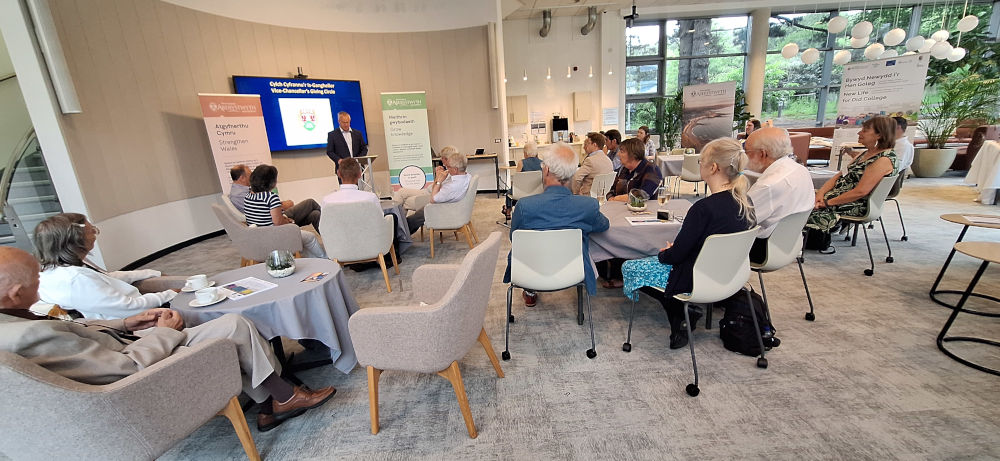 Bydd anerchiad byr gan Dr Rhodri Llwyd Morgan (Cyfarwyddwr y Gymraeg a Chysylltiadau Allanol) a’r gyn-fyfyrwraig, Non Gwilym (Pennaeth Cyfathrebu, Cynulliad Cenedlaethol Cymru) gyda derbyniad diodydd i ddilyn.