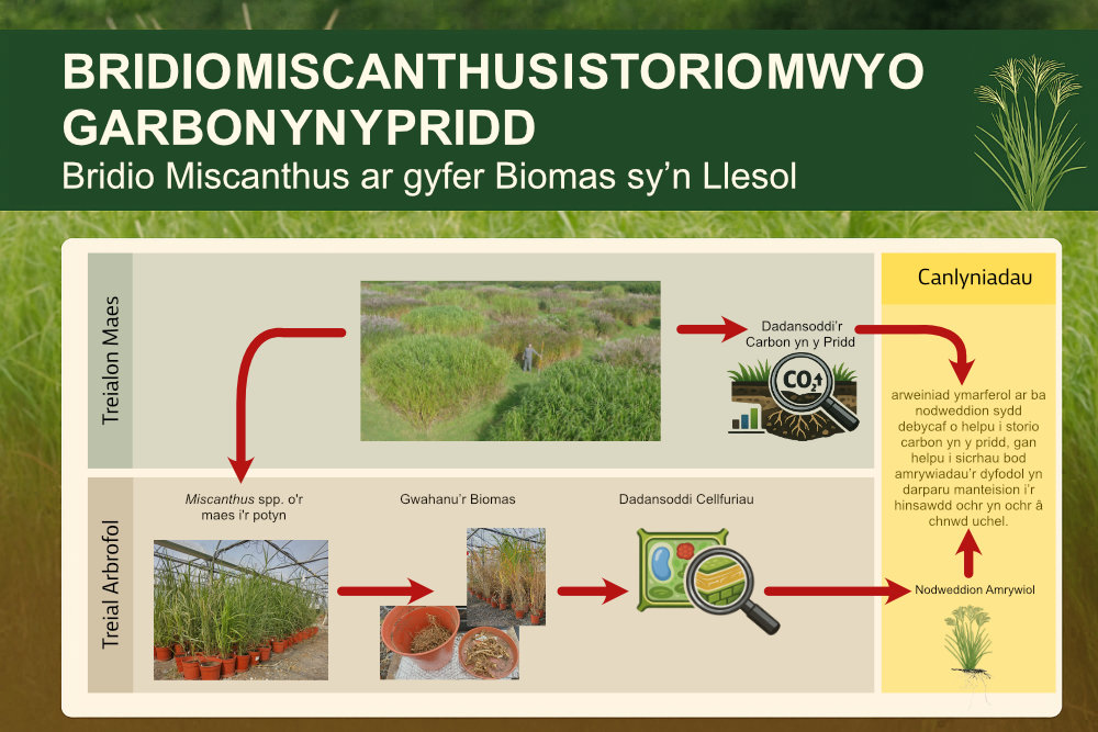 Mae ymchwil yn Athrofa'r Gwyddorau Biolegol, Amgylcheddol a Gwledig (IBERS) ym Mhrifysgol Aberystwyth, yn helpu i egluro sut y gallai penderfyniadau bridio planhigion Miscanthus wella gallu’r planhigion i storio carbon yn y pridd am gyfnodau hir. Y nod yw helpu i liniaru effeithiau newid yn yr hinsawdd, gan gynnal systemau biomas cynhyrchiol ar yr un pryd.