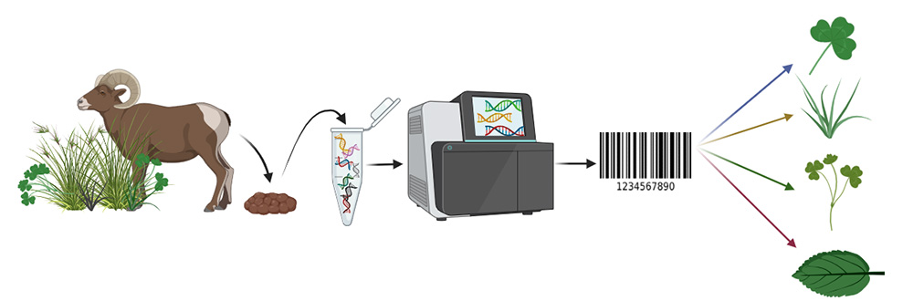 The researchers tested how accurately two commonly used plant DNA barcodes (ITS2 and trnL) reflected the actual diets of sheep fed controlled forage mixtures. They found that while the technique can reliably identify many plant species including both major and minor components of the diet, it is less accurate at estimating the proportion of each plant in the diet—especially when the forage is harder to digest. Some species, such as Medicago sativa, were detected even at very low levels (1% of the diet) but tended to be over-represented in the DNA results due to several biological biases.