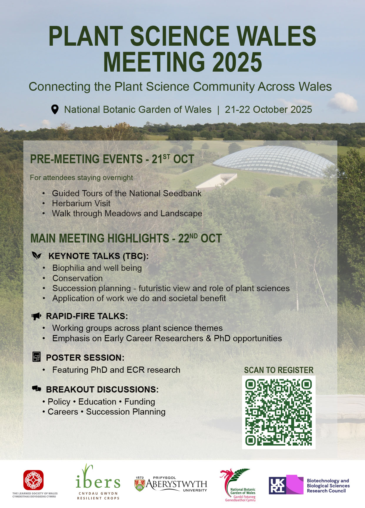 We are pleased to announce that IBERS is organising the Plant Science Wales Meeting 2025, taking place at the National Botanic Garden of Wales on 21-22 October 2025.