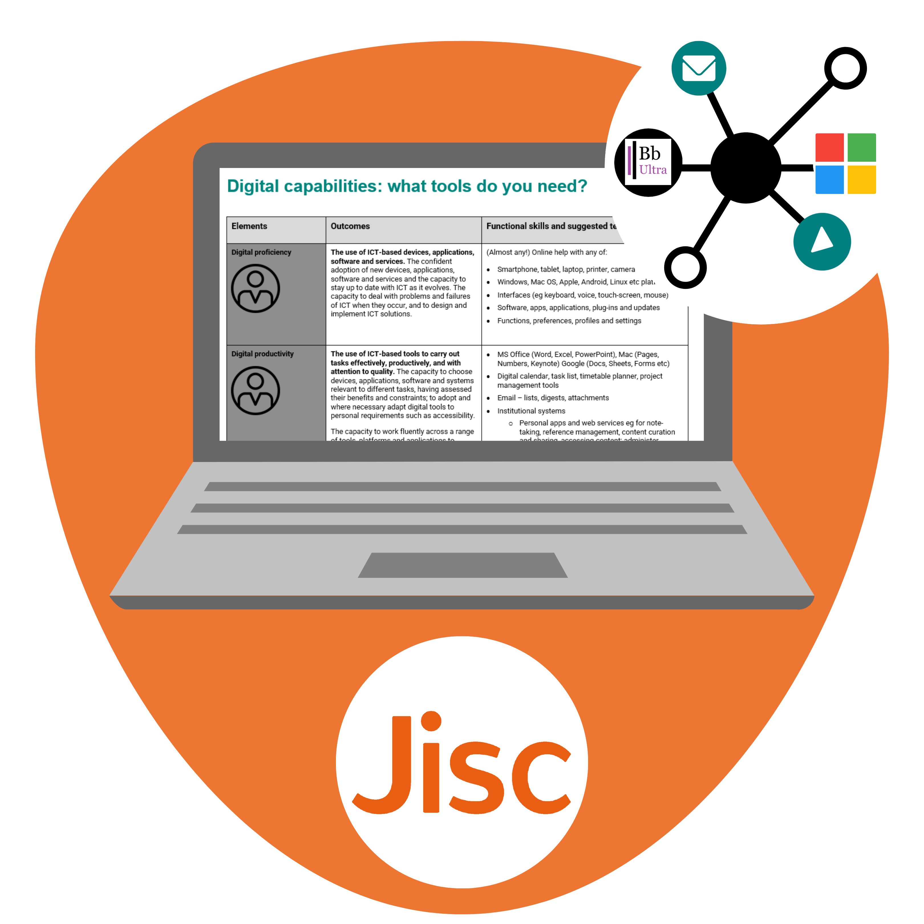 To support staff with embedding digital skills within the curriculum, Jisc have developed a Technology Mapping document. This document supports staff to identify the various tools needed to meet the six main elements outlined in their Jisc Digital Capabilities [Skills] Framework.