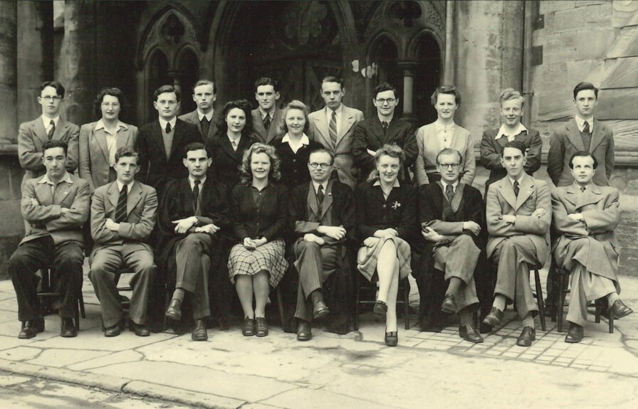 The porch was the favoured location for formal University photographs for many years. Pictured are members of the Law Society from 1945. Do you recognise anyone?