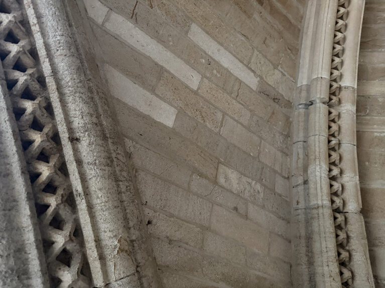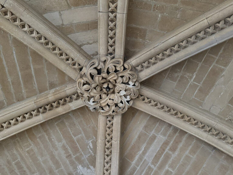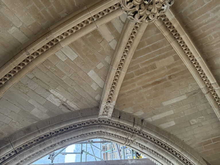 The ceiling stonework has been cleaned and repointed using a mix of lime and coarse building sand, as used by the original builders.