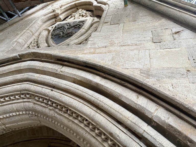 Carved from stone, the crest will be restored using a traditional mix of lime and sand.
