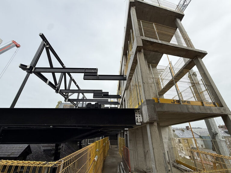The next stage will see the steel structure assembled for the plant room that will provide all the essential services for the Old College.