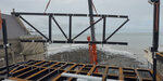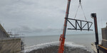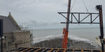 With the tide out, a clear blue sky and the sun beaming down, it was worth venturing down onto the rocky beach below the Pier to marvel at the great work being done by the crew from Dollcast, Davies Cranes and the Old College project’s principal contractor Andrew Scott.